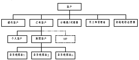 同時,客戶服務中心的服務對象進一步擴大,按照是否已經(jīng)使用該電信運營商提供的電信業(yè)務將客戶劃分為:潛在客戶、已有客戶。這里的潛在客戶并不針對某一具體的電信業(yè)務,而是針對電信運營商整體而言。其中,已有客戶又分為個人客戶和集團客戶。集團客戶內(nèi)部存在多個業(yè)務使用者,這些業(yè)務使用者本身也是客服系統(tǒng)的客戶。分銷/代理商代為發(fā)展電信運營商的客戶,同時他們也可以單獨作為一種特殊客戶享有客服系統(tǒng)提供的服務。在個人客戶和集團客戶中,均會有一部分成為特殊的VIP。此外,對客服系統(tǒng)來說,電信運營商的員工和管理者也是"客戶";同時,從網(wǎng)間互聯(lián)和網(wǎng)間結(jié)算的角度,其它運營商也應該按照客戶來對待。