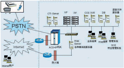 (1) 接入系統(tǒng):完成呼叫的接入和呼出,分配相應(yīng)的媒體處理通道,主要由交換接入設(shè)備(如ACD)、媒體服務(wù)器、CTI Server、CCS等組成。其中,媒體服務(wù)器主要完成Internet的網(wǎng)上呼叫的處理,處理后的呼叫通過CCS進(jìn)行統(tǒng)一排隊分配,并路由到相應(yīng)的人工座席上。