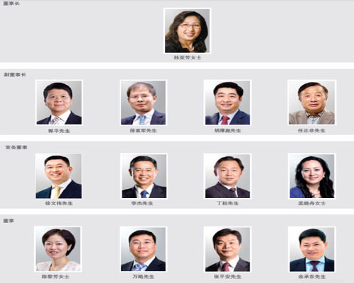 年報(bào)顯示,2010年底,華為全體持股員工投票選舉產(chǎn)生了51名持股員工代表,并由這51名持股員工代表于2011年1月選舉出新一屆的董事會(huì)和監(jiān)事會(huì)成員。新一屆董事會(huì)成員為孫亞芳、郭平、徐直軍、胡厚崑、任正非、徐文偉、李杰、丁耘、孟晚舟、陳黎芳、萬飚、張平安、余承東;監(jiān)事會(huì)成員為梁華、彭智平、任樹錄、田峰、鄧飚。這也是華為首次披露所有董事會(huì)、監(jiān)事會(huì)成員名單、簡歷和照片。