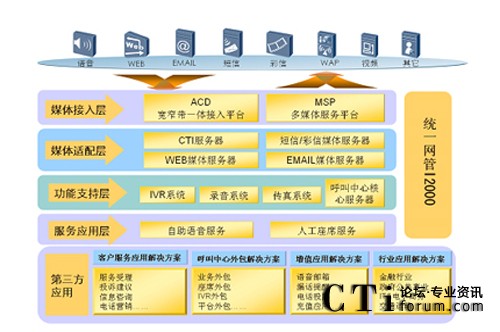 華為多媒體聯(lián)絡中心系統(tǒng)不僅支持普通語音呼叫的接入,還支持Email、Fax、短信、視頻等多種媒體呼叫接入,以及通過Web方式發(fā)起的護航瀏覽、點擊通話、文字交談等呼叫的接入,以語音、文字、圖像等多種媒體的組合為客戶提供多通道的服務。用戶可以同時通過語音、圖像、文字多種形式與聯(lián)絡中心的業(yè)務代表進行交互,極大的拓寬了用戶與業(yè)務代表之間信息交互的空間,提高了信息交互的效率。