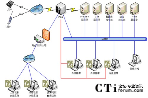 呼叫中心是一種基于CTI技術(shù)、充分利用通信網(wǎng)和計(jì)算機(jī)網(wǎng)的多項(xiàng)功能集成,并與企業(yè)連為一體的一個(gè)完整的綜合信息服務(wù)系統(tǒng),利用現(xiàn)有的各種先進(jìn)的通信手段,效地為客戶(hù)提供高質(zhì)量、高效率、全方位的服務(wù)。表面上看,呼叫中心是企業(yè)在最外層加上了一個(gè)服務(wù)層。實(shí)際上,它不僅對(duì)企業(yè)的外部用戶(hù)具有服務(wù)功能,同時(shí)也為企業(yè)內(nèi)部的管理、服務(wù)、調(diào)度、增值起到非常重要的協(xié)調(diào)作用。