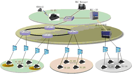 一般來說,在省公司同時參與會議的人數(shù)較多,考慮配置比較大的系統(tǒng),由某一領(lǐng)導(dǎo)召集一些相關(guān)成員在此開會;在地市公司同時參與會議的人數(shù)較少,只是一些主要領(lǐng)導(dǎo)參加會議,考慮配置比較小的系統(tǒng);同時,為了實現(xiàn)終端之間管理和傳送音頻、視頻和數(shù)據(jù),需要MCU來協(xié)調(diào)終端的工作,并與上級MCU相級聯(lián),擴大會議的規(guī)模。另外,可以增加一套T.120服務(wù)器,該系統(tǒng)是利用多媒體技術(shù)幫助使用者對工作中的各種信息進行處理,如共享數(shù)據(jù)、共享應(yīng)用程序、實現(xiàn)文件的雙向傳輸?shù),從而?gòu)造出一個多人共享的工作空間。以及增加一套VOD系統(tǒng),它集視頻采集、點播、廣播于一體,這樣就可以將視頻會議的內(nèi)容實時的錄制到本地,也可將一些培訓(xùn)資料放在視頻點播里,便于對貴公司員工進行培訓(xùn),還能通過視頻廣播的功能,讓使用PC機的人員不在會議室,便可以通過瀏覽器實時的看到和聽到正在召開的會議。