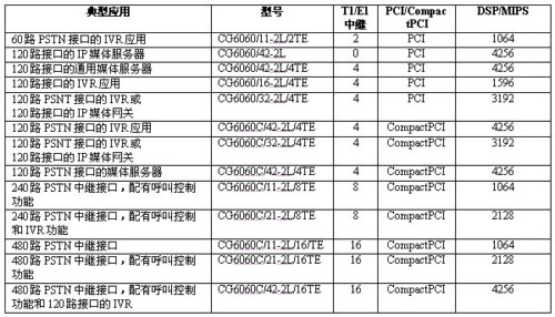 CG 6060系列產(chǎn)品體系設(shè)計在單塊板卡上集成了PSTN接口、電信協(xié)議、全面的IVR功能、全雙工回音消除、語音編碼、傳真處理、會議應(yīng)用、視頻處理、快速以太接口和數(shù)據(jù)包協(xié)議。這種集成產(chǎn)生了經(jīng)濟(jì)型、可擴(kuò)展的系統(tǒng)平臺,可以滿足OEM供應(yīng)商對120路接口以上新一代匯聚應(yīng)用解決方案的研制需求。