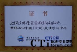 CTI論壇(ctiforum)10月14日消息(記者 潘婷婷):2010年9月28日,由中國電子商會(huì)呼叫中心與客戶關(guān)系管理專業(yè)委員會(huì)(CNCCA)主辦,國家工業(yè)和信息化部支持,CTI論壇承辦的2010中國呼叫中心產(chǎn)業(yè)峰會(huì)暨中國(亞太)最佳呼叫中心頒獎(jiǎng)典禮在北京成功召開。北京易才博普奧管理顧問有限公司通過行業(yè)推薦、評(píng)審專家小組的電話暗訪、入戶調(diào)研等多個(gè)環(huán)節(jié)的嚴(yán)格審核,憑借在人力資源外包服務(wù)領(lǐng)域的卓越表現(xiàn)從眾多企業(yè)中脫穎而出,并最終摘取“2010中國(亞太)最佳呼叫中心”桂冠。