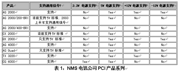 當(dāng)前PCI局域總線技術(shù)標(biāo)準(zhǔn)允許主板同時(shí)提供5V和3V輸出。輸出技術(shù)標(biāo)準(zhǔn)與板卡使用的信令標(biāo)準(zhǔn)無關(guān)。一部分NMS板卡同時(shí)需要兩種輸入,而另外一部分板卡只需要5V輸入。