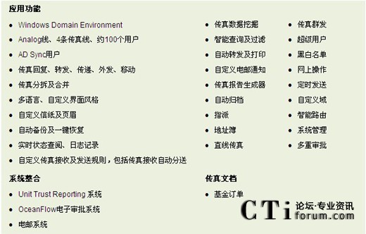 大新銀行Information Technology Division 項目經(jīng)理Benjamin Chu指出:“OceanFax Fax Server具有全面而強(qiáng)大的功能,支持電子傳真及自動傳真,系統(tǒng)易使用和管理;通過與Unit Trust Reporting系統(tǒng)及OceanFlow電子審批系統(tǒng)的整合,理順大新銀行投資基金業(yè)務(wù),實現(xiàn)工作的自動流程。該整合能提高效率、降低成本、保證信息安全及快速帶來投資回報。”