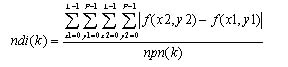 其中f(x1, y1),f(x2, y2)為圖中距離大于k、小于k+1的任兩點的值,即x1、y1、x2、及y2要符合下列式(3.2)的判斷式。又npn(k)代表的是,圖中所有符合上列條件的點對數(shù)。