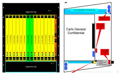 另外在機(jī)架內(nèi)的放置空間上,42U的標(biāo)準(zhǔn)機(jī)架里可以放3臺(tái)12~14U機(jī)箱,若將機(jī)箱降至10U則可以放置4臺(tái),這樣可以增加整體空間的利用率,所以有了10U機(jī)箱的設(shè)計(jì)需求。在各種不同高度的機(jī)箱設(shè)計(jì)中,風(fēng)扇散熱系統(tǒng)的放置位置、方式與總散熱效能能夠達(dá)到200*14=2800W,將會(huì)是ATCA機(jī)箱設(shè)計(jì)所要考慮的最重要因素之一,尤其是在10U的機(jī)箱設(shè)計(jì)上。