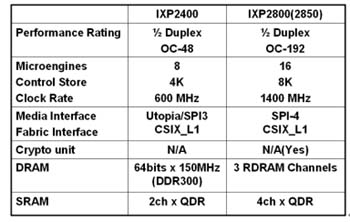 IXP-2800及IXP-2850,請(qǐng)參考表一的性能差異。除此之外,Intel并考慮比照IXP-42X系列做法,高度整合MACs等功能區(qū)塊進(jìn)來,建造優(yōu)異的性價(jià)比產(chǎn)品,使這一系列處理器的應(yīng)用更普及化。