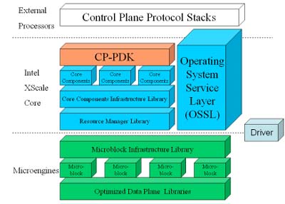全系列IXP-2XXX網(wǎng)絡(luò)處理器都可拆解為『控制管道』(Control