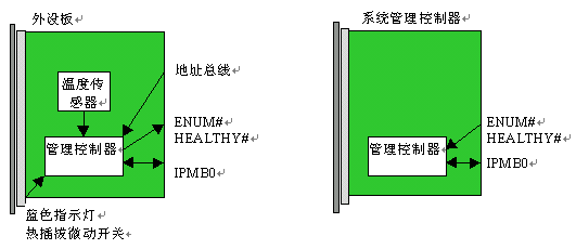 PICMG 2.9規(guī)范得到了進一步的改善,增補了一份變更通知,解決了最初2.9規(guī)范中的一些缺陷。ECR致力于定義一種就軟件來說與硬件無關(guān)的機制,這種機制能判別背板的容量以及哪個槽位已經(jīng)插入了CompactPCI單板。位于一個標準CompactPCI單板上的管理控制器可能會和地址總線、位于單板把手上熱插拔微動開關(guān)、藍色的熱插拔燈、甚至是HEALTHY和ENUM#信號聯(lián)通。典型的系統(tǒng)管理控制器板與位于外設(shè)板上的管理控制器的聯(lián)接如下圖3所示: