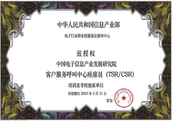呼叫中心職業(yè)標準體系的主管單位為信息產(chǎn)業(yè)部電子行業(yè)職業(yè)技能鑒定指導(dǎo)中心;主辦單位為中國電子信息產(chǎn)業(yè)發(fā)展研究院職業(yè)技能培訓(xùn)部。
