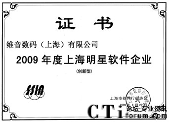 維音數(shù)碼榮獲2009年度上海明星軟件企業(yè)