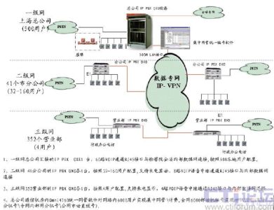 多個用戶,覆蓋1 個總公司、41 個分公司和352 個營業(yè)部。在設(shè)計組網(wǎng)方案時,阿爾卡特朗訊根據(jù)用戶的需求和實際情況,并充分考慮現(xiàn)有的數(shù)據(jù)網(wǎng)絡(luò)資源,提出采用星狀網(wǎng)絡(luò)組網(wǎng)結(jié)構(gòu)建設(shè)PBX