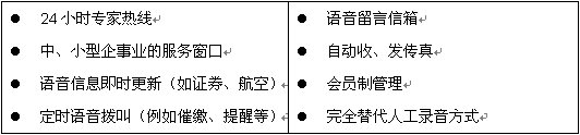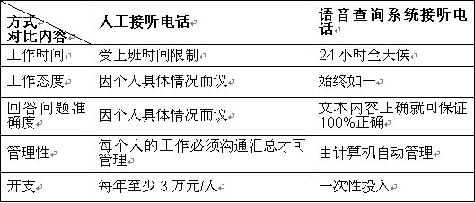 將以往的單位的人工熱線電話轉(zhuǎn)換為計算機24小時自動熱線。有效解決服務態(tài)度、服務質(zhì)量等敏感問題。咨詢來電只須象以往撥打熱線電話,計算機中的語音卡就會自動接通,完成95%以上的人工服務任務,用戶就可以通過電話這種最簡單、最易用的方式快速獲取信息。