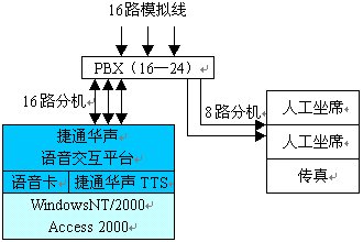 適用于中小型企事業(yè)單位的客戶服務系統(tǒng),或信息查詢系統(tǒng)。特點是線路資源主要用于交互系統(tǒng),可以最大限度的利用線路資源進行服務或查詢工作。同時充分利用交換機進行內(nèi)部線路交換,提高服務效率。