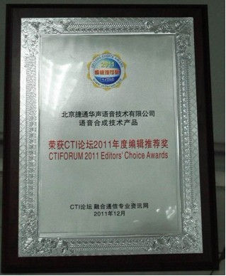 捷通華聲語(yǔ)音合成技術(shù)榮獲CTI論壇年度編輯推薦獎(jiǎng)