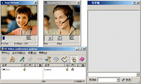 I P視頻會議,是一種利用普通的PC機加上簡單的視頻攝像頭和耳機麥克風,通過Internet或者是局域網(wǎng)進行傳輸,以低廉的成本傳送數(shù)據(jù)、視頻和音頻信號的新型會議方式。V2公司的視頻會議產(chǎn)品V2 Conference 就采用了這種技術先進而且經(jīng)濟合算的方式,與傳統(tǒng)的需要專用的服務器和硬件支持的視頻會議相比,該系統(tǒng)可以使您無需進行成本高昂的投入,就實現(xiàn)高質(zhì)量、高可靠性的音視頻通訊。同時,為了方便您的管理,V2 Conference提供了會議管理的功能,使您足不出戶,就可以掌控全局。