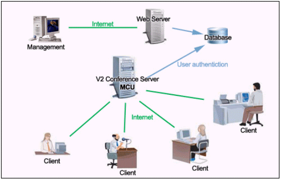 V2 Conference可以利用普通的PC機(jī)、標(biāo)準(zhǔn)的視頻攝像頭、耳機(jī)和麥克風(fēng),通過Internet或者是局域網(wǎng)進(jìn)行會(huì)議。與傳統(tǒng)的需要專用的服務(wù)器和硬件支持的視頻會(huì)議相比,企業(yè)無需投入高昂的成本,就可以實(shí)現(xiàn)高質(zhì)量的遠(yuǎn)程會(huì)議。同時(shí),V2 Conference還提供了遠(yuǎn)程會(huì)議管理的功能。