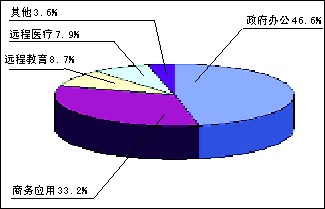 其中,視頻會議業(yè)務(wù)是目前階段視頻通信發(fā)展的重點,其主流是基于IP協(xié)議的視頻會議技術(shù)。目前的市場特點是硬件視頻會議已經(jīng)被接受,軟件視頻會議正在成長。但是競爭格局分散,仍然處于“戰(zhàn)國時代”,還沒有一家公司處于絕對的統(tǒng)治地位。當(dāng)前視頻會議的主要應(yīng)用場所分布如圖1。