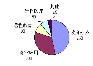 視頻會(huì)議系統(tǒng)在我國開始發(fā)展的初期,政府部門及電信、金融、電力、鐵路等壟斷性行業(yè)的應(yīng)用占據(jù)了絕大部分的市場(chǎng)份額。近年來隨著電子政務(wù)工程的逐步推進(jìn),政府部門更加關(guān)注視頻會(huì)議系統(tǒng)建設(shè)。在經(jīng)濟(jì)發(fā)達(dá)地區(qū)(例如浙江、山東、廣東),視頻會(huì)議網(wǎng)已覆蓋到地市級(jí)城市,有的甚至覆蓋到縣一級(jí)。除各級(jí)政府之外,其它諸如檢察院、法院、公安和水利等職能部門也是視頻會(huì)議系統(tǒng)的重要用戶。賽迪網(wǎng)曾對(duì)視頻會(huì)議系統(tǒng)的應(yīng)用現(xiàn)狀做過調(diào)查,發(fā)現(xiàn)政府辦公占全部市場(chǎng)份額的46.6%,電信、金融、鐵路、電力等行業(yè)占據(jù)了33.2%的市場(chǎng)份額,而遠(yuǎn)程教育和遠(yuǎn)程醫(yī)療由于尚處于發(fā)展初期,所占份額分別是8.7%和7.9%。
