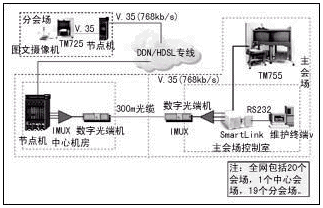 本會議電視系統(tǒng)的網(wǎng)絡接口全部采用了成本較低的V.35接口,并利用節(jié)省下的投資,為用戶購置了圖文攝像機,方便了用戶召開技術(shù)培訓和案例分析會議。