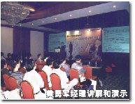 通過(guò)兩位演講者深入淺出的講解,看來(lái)聆聽者已經(jīng)對(duì)文正明的iUnicenter網(wǎng)絡(luò)化客戶服務(wù)中心的構(gòu)成、應(yīng)用有了大致的了解,但與會(huì)的證券業(yè)人士關(guān)心的不僅是這套解決方案理論上的優(yōu)越,他們更渴望見到實(shí)際上的表現(xiàn)如何,于是,文正明公司規(guī)劃發(fā)展部付總經(jīng)理黃勇軍就用一氣呵成的模擬演示給了他們完美的答案。
