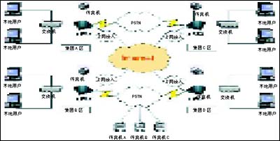 3.系統(tǒng)內(nèi)用戶發(fā)送傳真說明:集團(tuán)A區(qū)的用戶如果發(fā)送本地傳真,則在集團(tuán)A區(qū)的e-FAX網(wǎng)絡(luò)傳真機(jī)收到任務(wù)請求后,通過本地的PSTN網(wǎng)絡(luò)發(fā)送傳真,傳真發(fā)送成功后,系統(tǒng)自動(dòng)給發(fā)送人一份傳真通報(bào),發(fā)送完成;集團(tuán)A區(qū)的用戶如果發(fā)送外地傳真,例如發(fā)送到集團(tuán)D區(qū),集團(tuán)A區(qū)的e-FAX網(wǎng)絡(luò)傳真機(jī)會(huì)自動(dòng)根據(jù)收到的任務(wù)請求信息進(jìn)行判斷,根據(jù)判斷的信息,將發(fā)送傳真請求和相應(yīng)的傳真文件通過Internet路由到集團(tuán)D區(qū)的e-FAX網(wǎng)絡(luò)傳真機(jī),集團(tuán)D區(qū)的網(wǎng)絡(luò)傳真機(jī)收到訊息后,會(huì)自動(dòng)通過本地的PSTN發(fā)送傳真任務(wù),發(fā)送結(jié)果會(huì)自動(dòng)通報(bào)到集團(tuán)A區(qū)的發(fā)送人,發(fā)送完成。同理,在集團(tuán)的其他區(qū)域內(nèi)的發(fā)送傳真請求都會(huì)自動(dòng)路由,判斷發(fā)送方式,從而完成發(fā)送任務(wù)。