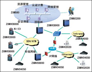 中興通訊寬帶高清晰度多媒體視訊系統(tǒng)采用MPEG-2和多信道協(xié)同處理技術(shù),通過寬帶傳輸網(wǎng)絡(luò),提供實(shí)時、雙向、交互式的可視會議服務(wù)。其核心是位于網(wǎng)絡(luò)中心的ZXMVC8900多媒體視訊服務(wù)器和ZXMVC 6000高清晰度會議電視終端設(shè)備。同時還能接入H.320、H.323類型的會議電視終端,并結(jié)合流媒體服務(wù)模塊。