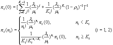 分別為語(yǔ)音自動(dòng)應(yīng)答系統(tǒng)與人工服務(wù)系統(tǒng)的平穩(wěn)狀態(tài)分布。