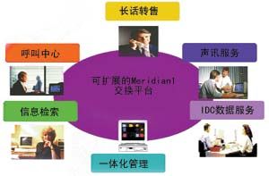 由于IP電話及計費系統(tǒng)是搭建在通廣北電的Meridian 1交換平臺上,因此很容易實現(xiàn)其他業(yè)務(wù)的并存和提升。在項目實施中還可以加入呼叫中心的功能。它的構(gòu)建不僅能滿足現(xiàn)今IP電話的服務(wù)功能,還能為今后運營商的其他業(yè)務(wù)提供服務(wù)。