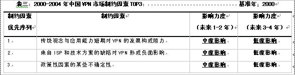 三、2000-2004年度,中國VPN市場(chǎng)發(fā)展的驅(qū)動(dòng)與制約因素