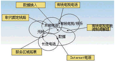 數(shù)據(jù)服務(wù)同本地電話服務(wù)的融合,是不來最重要的融合趨勢之一,其主要體現(xiàn)在通過本地電話可以解決數(shù)據(jù)業(yè)務(wù)的接入問題,可以提供窄帶或?qū)拵У慕尤肽芰ΑM瑫r,可以為Internet服務(wù),如電子郵件服務(wù)同電話話音服務(wù)結(jié)合起來創(chuàng)造條件。一種未來的發(fā)展方向就是利用電話來接收電子郵件同時可以用電子郵件的方式閱讀語言信箱中的留言。“聽電子郵件,看語言信箱”是對這種融合服務(wù)的最好描述。而數(shù)據(jù)業(yè)務(wù)同長途電話業(yè)務(wù)的融合集中于通過VoIP技術(shù)提供長途電話服務(wù),競爭收入最大的電信市場。數(shù)據(jù)服務(wù)同有線電視娛樂服務(wù)的融合主要體現(xiàn)在以Cable Modem做為數(shù)據(jù)接入手段和視頻點播這樣的娛樂服務(wù)。通過Cable Modem,有線電視網(wǎng)也可以提供本地電話和長途電話接入業(yè)務(wù),象AT&T和TCI 及MediaOne 正在進(jìn)行的電話業(yè)務(wù)實驗。而寬帶的數(shù)據(jù)接入則為數(shù)據(jù)服務(wù)的寬帶化提供了條件。