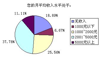 以上選擇中,選擇答案A~E的被訪者比例分別為18.89%、6.67%、25.56%、37.78%和11.11%,也就是說我們這次調(diào)查的重頭是放在一般收入水平和無收入(學(xué)生)兩類人群,這兩個(gè)人群也正是SMS市場上最活躍的分子。高收入和低收入人群要么因?yàn)橘Y金充裕而選擇語音業(yè)務(wù),要么就是因?yàn)橘Y金的缺乏而盡量不使用移動(dòng)通信方式。