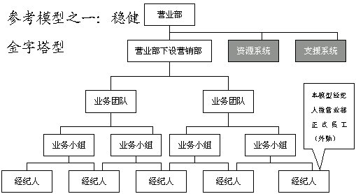 此五種模式建立在營(yíng)業(yè)部基礎(chǔ)上,在券商總部,建議設(shè)立垂直的業(yè)務(wù)管理機(jī)構(gòu),即經(jīng)紀(jì)業(yè)務(wù)總部實(shí)行事業(yè)部制,下設(shè)分工專(zhuān)業(yè)的市場(chǎng)營(yíng)銷(xiāo)部、客戶服務(wù)部、經(jīng)紀(jì)人訓(xùn)練部和綜合管理部等。