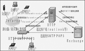 系統(tǒng)環(huán)境:某公司,擁有員工5000人,現(xiàn)在正在使用微軟的Exchange郵件系統(tǒng),由于遭受垃圾郵件和病毒郵件攻擊,系統(tǒng)經(jīng)常因為負載過大或病毒受到損害,耗費了郵件用戶和管理員的大量精力。公司希望改變這種糟糕的狀況。同時,公司希望能夠監(jiān)控部分員工的信件。