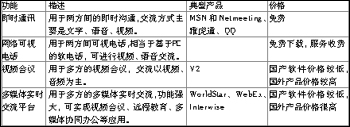從結(jié)構(gòu)上,軟件視頻產(chǎn)品基本分為兩大類(lèi):一類(lèi)是點(diǎn)對(duì)點(diǎn),另一類(lèi)是一點(diǎn)對(duì)多點(diǎn)。點(diǎn)對(duì)點(diǎn)產(chǎn)品僅限于兩人之間的交流,此類(lèi)典型產(chǎn)品有微軟的MSN和NetMeeting、Yahoo的雅虎通、QQ等;一點(diǎn)對(duì)多點(diǎn)產(chǎn)品用于多方的實(shí)時(shí)交流,此類(lèi)產(chǎn)品是各種軟件解決方案的軟件視頻會(huì)議產(chǎn)品,如:北京捷先科技的WorldStar、威速公司的V2等。根據(jù)用途的不同,軟件視頻產(chǎn)品大致分為即時(shí)通訊產(chǎn)品(如MSN和NetMeeting、雅虎通、QQ)、網(wǎng)絡(luò)可視電話產(chǎn)品、視頻會(huì)議產(chǎn)品(如:V2)、多媒體實(shí)時(shí)交流平臺(tái)產(chǎn)品(如:WorldStar、WebEx、Interwise等),分類(lèi)如表。
