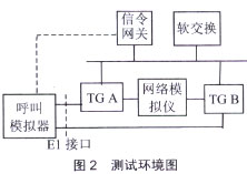 IP中繼媒體網(wǎng)關測試主要內(nèi)容包括:基本功能測試、接口測試、協(xié)議測試、通信流程測試、網(wǎng)管功能測試。性能測試、可靠性測試和網(wǎng)同步測試等。測試環(huán)境如圖2所示。