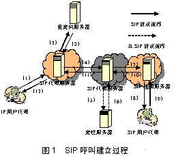 圖1是一個(gè)SIP呼叫建立過程的示意圖,其中: