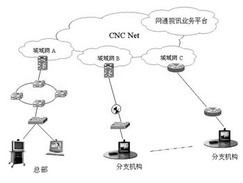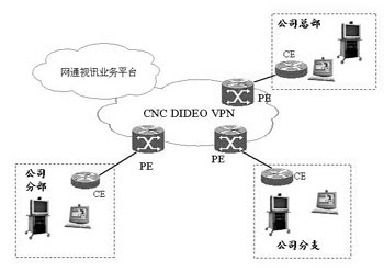 網(wǎng)通視訊業(yè)務(wù)作為應(yīng)用層的服務(wù),可以通過(guò)客戶的分支機(jī)構(gòu)之間由MPLS VPN組成的專(zhuān)網(wǎng)來(lái)承載視頻通信,或者通過(guò)接入網(wǎng)通的視頻VPN來(lái)使用視頻通信服務(wù)。