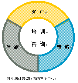 當(dāng)然,提升效果對(duì)于培訓(xùn)咨詢服務(wù)提供商來說是一個(gè)很高的要求,不但要有專業(yè)運(yùn)營經(jīng)驗(yàn)和精深的行業(yè)知識(shí),還需要從"以問題為中心"的思路過渡到關(guān)注"問題、客戶、策略"三個(gè)中心(如圖6 所示)。