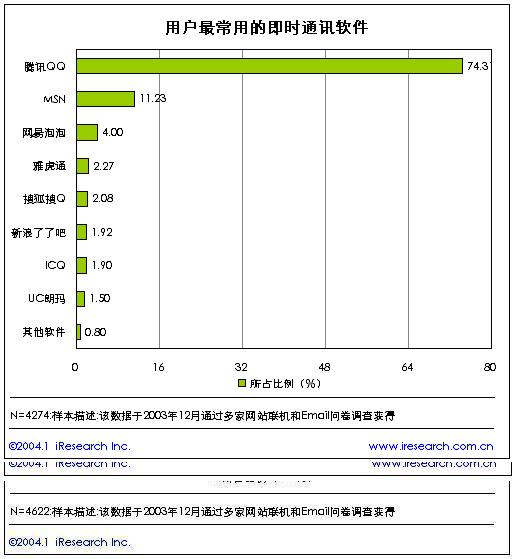新迎來的2004年對于中國的互聯(lián)網(wǎng)是充滿無限憧憬的一年,互聯(lián)網(wǎng)用戶打到了近8000萬,在繼短信、網(wǎng)絡(luò)廣告、網(wǎng)絡(luò)游戲成為中國網(wǎng)絡(luò)企業(yè)發(fā)家致富的法寶之后,即時通訊又將是一塊無限誘惑的領(lǐng)地,成為門戶網(wǎng)站、電信運營商展開廝殺的新大陸。