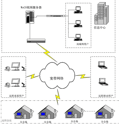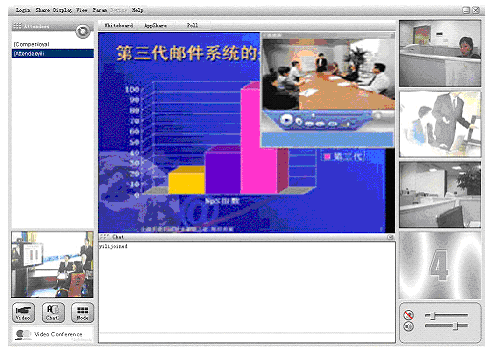 計算機、網(wǎng)絡(luò)技術(shù)高速發(fā)展的今天,傳統(tǒng)的通訊方式日益滿足不了人們的要求。人們要求能進行遠(yuǎn)程會議,開展面對面的交流;同時,在滿足傳統(tǒng)視頻會議音/視頻通信的基本要求之外,現(xiàn)代會議更希望能夠提供更加豐富多樣的會議討論形式和功能,比如:遠(yuǎn)程開展季度/年度預(yù)算及工作計劃的討論,需要遠(yuǎn)程共享PPT等演示文檔和EXCEL等表格,需要共同就某一網(wǎng)上信息開展討論,甚至能夠?qū)㈤_會的通知通過電子郵件和手機短消息的方式傳達(dá)到每一個與會者那里。
