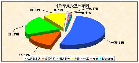 看到這一數(shù)據(jù),精明的管理者可能要坐不住了。如何把這部分耗費的時間能有效的利用起來呢?而預測式的外呼系統(tǒng)正是用來解決這個問題的,其工作原理是系統(tǒng)在后臺根據(jù)某些設置條件成批的撥出電話,如果這個電話有人應答系統(tǒng)將立即將這條線派給空閑的坐席代表,如果是占線或者無人接聽等情況,系統(tǒng)則自動記錄下這次的聯(lián)系結果然后再撥打另一個電話。其結果是系統(tǒng)通過后臺的預撥和篩選不斷的將有效電話派給坐席,外呼坐席實際上就像一個呼入坐席,在不斷的處理著系統(tǒng)自動接入的電話,整體的工作效率將大為改善!