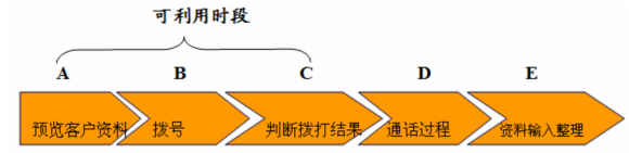 以上是以固定電話作為例子,如果呼叫清單全部是手機用戶,各種外呼結果的比例將有所不同,但總體趨勢不會有太大變化,至少還是有30%-40%的客戶是無法聯(lián)絡到的客戶。我們從以上的圖中可以看出,近一半的客戶是由于各種原因而無法聯(lián)絡到的,換句話來說,坐席代表花了大量的時間在處理一些無效的電話,而真正有效的話務時間(ACD%)50%左右。如果將這部分時間用來處理一些有效電話,那整個呼叫中心的效率將得到極大的提升。以下是一個電話呼出的過程: