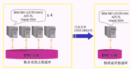 在這里簡(jiǎn)單介紹一個(gè)某省移動(dòng)公司帳務(wù)系統(tǒng)采用Oracle Data Guard物理備用數(shù)據(jù)庫的情況(見圖5)。
