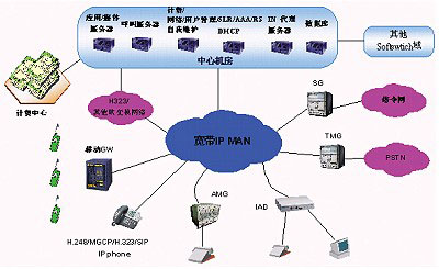圖1 基于城域網提供軟交換相關業(yè)務的系統(tǒng)結構