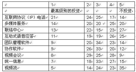 許多早期接受融合網(wǎng)絡的主要動因是為了減少語音成本。語音電話(VOIP)技術(shù)使融合網(wǎng)絡環(huán)境中的這一切都成為可能。語音電話實現(xiàn)了互聯(lián)網(wǎng)上的呼叫路由,繞過公共交換電話網(wǎng)絡(PSTN)進行傳輸,從而避免了昂貴的費用。我們的調(diào)查顯示,大部分公司將會在中短期內(nèi)把投資重點集中在融合網(wǎng)絡應用上。