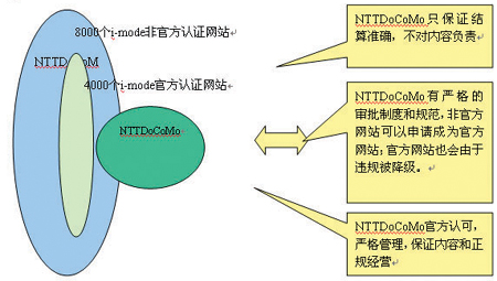 要解決上述問題需要一個(gè)系統(tǒng)化的進(jìn)程,我們可以借鑒NTT DoCoMo的i-mode的管理模式,如圖5所示,這種管理模式的核心思路是將SP分成官方和非官方分別管理,并建立升降級(jí)制度,鼓勵(lì)SP升級(jí)。這樣做的好處是:1.明確運(yùn)營商與SP的關(guān)系;2. 明確用戶投訴的對(duì)象;3. 降低SP進(jìn)入門檻,鼓勵(lì)SP開發(fā)業(yè)務(wù)。