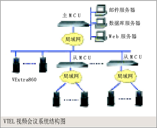 。。圖中各會(huì)議節(jié)點(diǎn)均配置一臺VTEL VExtra視頻會(huì)議終端,通過E1電路接入網(wǎng)絡(luò)中心的Meta